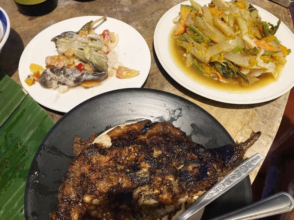 マグロのたたきは胡麻油の風味がする。フィリピンではあまり新鮮な生魚をいただけないため、テンションも爆上がり。日本のたたきというより、カルパッチョに近いイメージ。正直醤油がほしかった(笑)。続いてマグロの丸焼き。『魚を焼く』という概念もフィリピンではあまり出会えない。魚はだいたい揚げられている。揚げ物大好きフィリピーノ(フィリピン人)。たまに煮魚を見かけるが、丸っと1匹焼いたのは珍しい。当然かぶりつく。うまい!昼食べたマグロは身がぷりぷり、こちらの小ぶりのマグロはホクホクだ。カレンデリアのおばちゃんに「マグロ料理はないの?」って聞いて良かった。まさか妹さんが徒歩5メートルの路上でマグロを焼いてるとは(笑)!マグロの紹介で遅れたが、カレンデリアの料理も美味。どれもこれもビールと相性抜群だ。