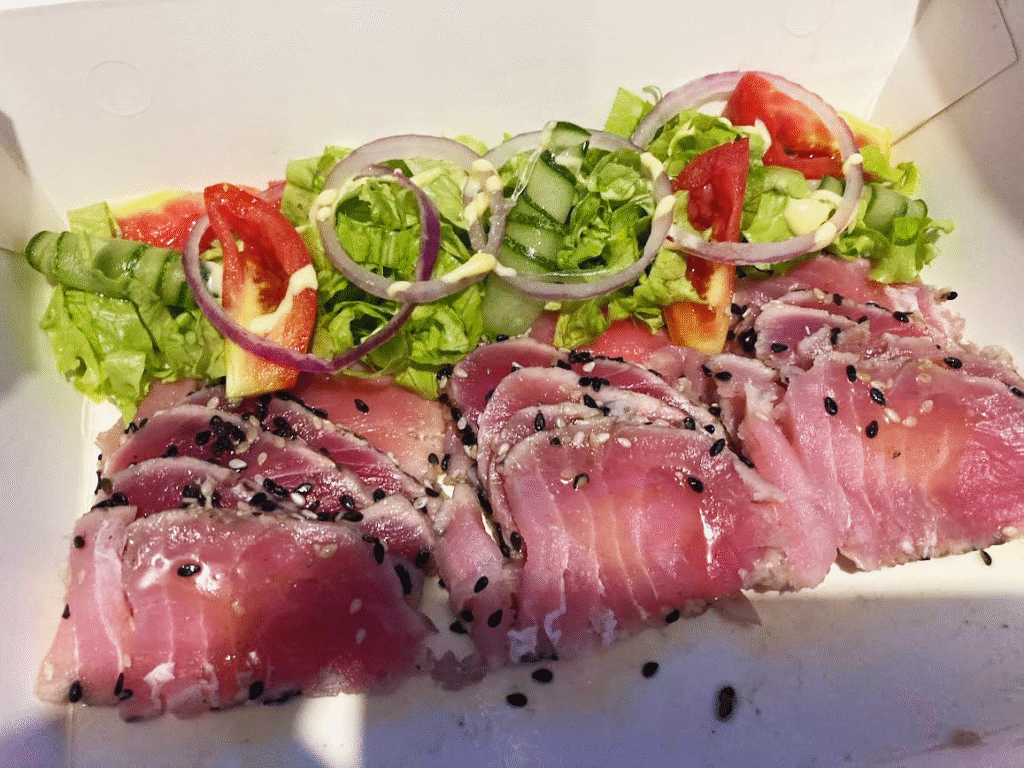 急に頭の中のタイマーが作動し出す。まず、カミギンにたった一つあるモール『ガイサノ』でビールをゲット。その後、さっきマグロレストランを調べた際にヒットした違う店によってマグロ料理を購入し、足りない分は午前中にお世話になったカレンデリアで補う。急げ!