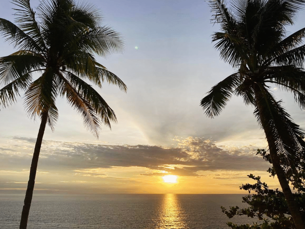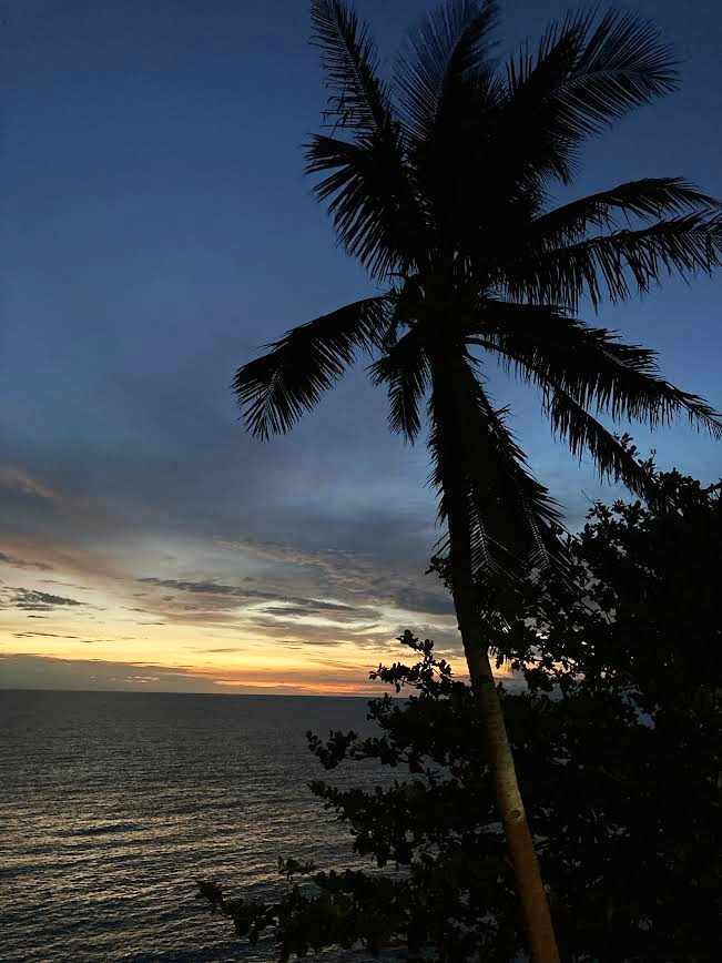 私は旅において慌ただしくあっちこっち見て回るのは好きではない。ホテルではチェックインからチェックアウトの時間ギリギリまで、コーヒーをお供に景色を眺め、夕焼けの時間からはビールやウイスキーを傍らに、夜の涼しさに心地よさを感じながら星を探す。そして早朝夜明け前に起床し、やはりコーヒーを淹れて朝焼けを期待しながら夜明けを待つのが常である。** カミギンをのんびり走るうちに、時間ははや午後1時近く。ホテルのチェックインは2時からなので、これは急がねば!しかし、今晩のご飯を買って帰らなければならない。というのも、今回のホテル、海を見渡せる崖の上にたたずんでおり、そのホテルの中でも一番のオーシャンビューの部屋をとってある。夕日の沈む海を眺めながらカミギンの幸とビールで今日をしめるのだ!