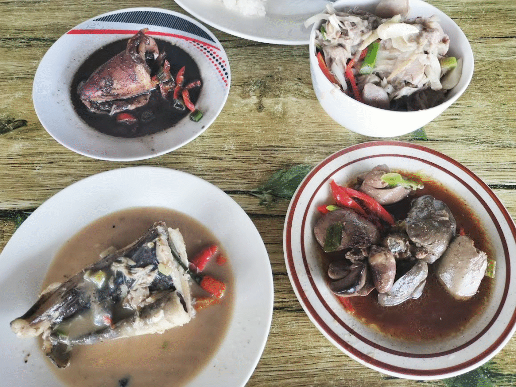 今回行ったカレンデリアは『3マッチョズ』。店のオーナーに名前の由来を聞いたら、マッチョな息子さんが3人いるからとのこと(笑)。下の写真左上から時計回りに、イカの煮物、鶏肉とジャックフルーツの種のココナッツ煮込み、鶏レバーの煮物、魚のココナッツ煮つけ。更にご飯を2杯たのんで200ペソほど。どれもおいしかったが、特に鶏肉とジャックフルーツの種の煮込みが絶品だった。フィリピンにはココナッツミルクで煮てある料理がたくさんある。レモングラスやしょうがと一緒に煮込まれたそれは香りもよく、ほんのり甘いココナッツミルクと塩気が食欲を誘うのである。