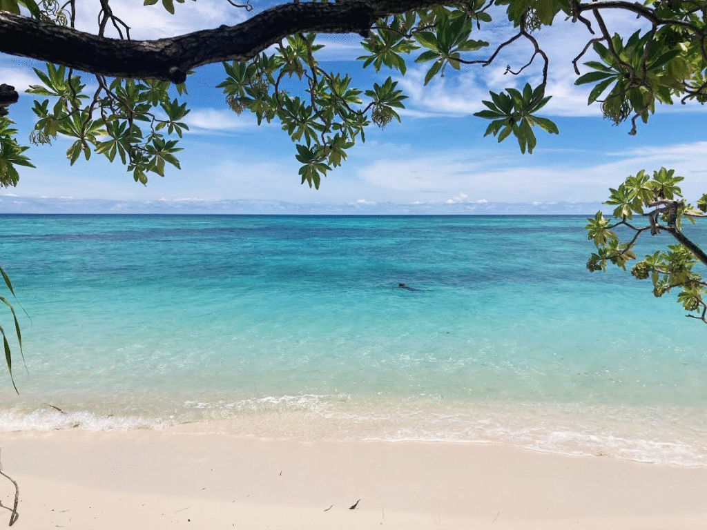 船に乗ること20分ほどで島のビーチが目視できる距離まで来た。船酔い必須の私としてはありがたい距離。島に近づくにつれ、海の色はどんどん透き通ったエメラルドグリーンになっていく。期待がぐんぐん高まる。さあ、いざ上陸じゃ!
