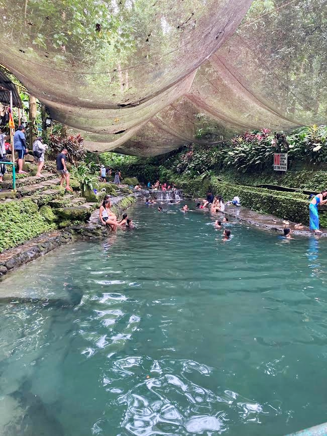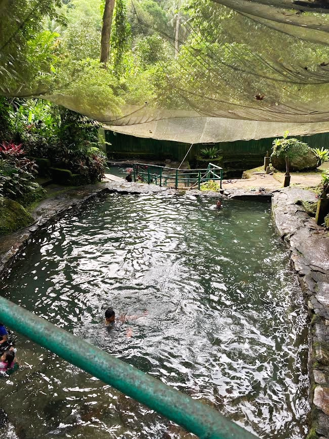 マンティゲ島からサン・ロケの港に到着後、空港方面にずんずん北上、途中でいくつか看板が出ており、温泉に行く道は何本かある模様。そのうちの一つを『ヒボックヒボック』と呼ばれる火山の上に向かって登っていくと『アーデント温泉』がある。** 入場料(20ペソ)を払って施設内に足を踏み入れると、バーベキューサイトやベンチが至る所に設置されており、温泉と言うよりは公園だ。ビールを飲みながら仲間でワイワイと楽しそうなフィリピン人がたくさんいる。奥へ奥へと進んでいくと、多くの人が川に浸かっている。これか!一見、いや何度見ても川遊びをしているようにしか見えないが、とりあえず入ってみよう。