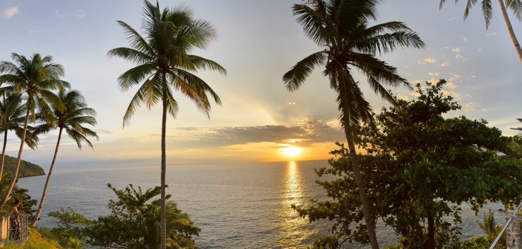 ** ホテルに戻り、今日という日を締めくくったのはテラスから眺めた美しい夕日だった。