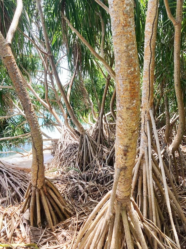 船着き場すぐのビーチでは、先発隊の人々が多数ポージングしながら写真を撮りまくっている。フィリピン人は自撮り大好きな民族だ。日本人は、自撮り=ナルシストと考える人も多く、SNSのプロフィール写真にそれを使う人は少ないと感じるが、フィリピン人にその感覚はない。がっつり自分をアピールしてくる。フェイスブックを見れば、ポーズを決めた写真だらけだ(笑)。島でも同様に、みんなが至るところで究極の一枚を目指しポーズをとっている。** 一生懸命な彼らの写真にカットインしても申し訳ないので、人気のないビーチを求めて島を一周してみることにした。島は白い砂とマングローブの木々で埋め尽くされており、木々の隙間に先人達が残した小道がある。それをたどりながら静寂を求めて散策してみる。マングローブ林を少し進むと、あっという間に人の気配はなくなった。