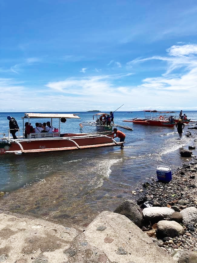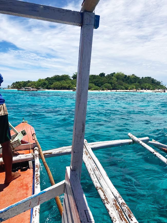 『マンティゲ島』へ行くには、『サン・ロケ(San Roque)』という港から船に乗る。ホテルからバイクで向かうこと30分、見過ごしそうな脇道を曲がればサンロケの港だ。チケット売り場で乗船券(6人まで1隻750ペソ)と島の入場料(一人75ペソ)を支払い、みんながなんとなく待っている木陰でボートの順番を待つ。やがて自分の名前が呼ばれ乗船。いざ、『マンティゲ島』へ!