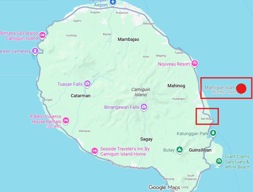 さて、4日間のカミギン旅行もはや折り返して3日目。この日はカミギン島の近くにある島、『マンティゲ島』に行くことにした。事前の下調べでは、ここでは亀と泳ぐことができるらしい!