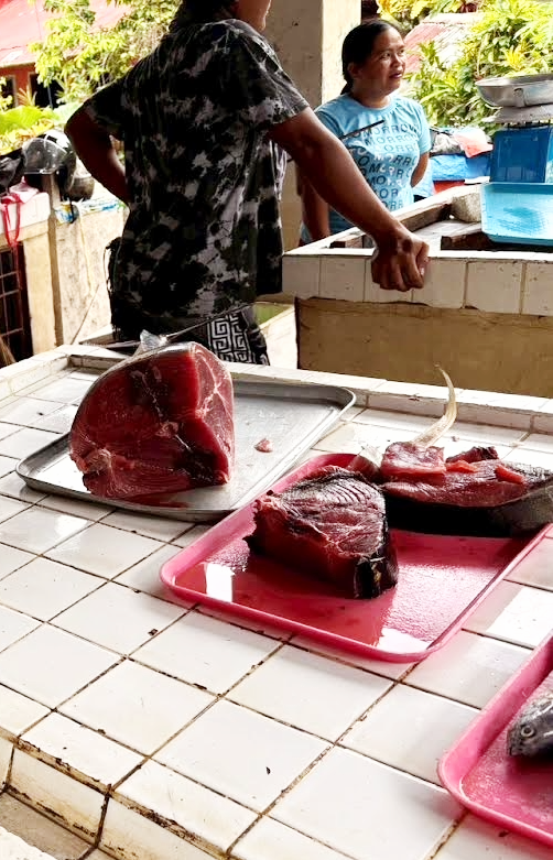 1日目に記したように(【小さな秘境の島、『カミギン(Camiguin)』へ! 1日目】参照)カミギンはマグロが有名らしい。滞在期間に何度か立ち寄った市場がある。日本の寿司屋が解体ショーと銘打って大きなマグロをさばいていくのをたまに見かけるが、カミギンの市場にもそれぐらいの大きさのマグロが横たわっていた。一度値段を聞いたら1キロ500ペソで、部位は関係ないらしい。つまり、大トロだろうが赤身だろうが値段は同じで早いものがち。市場のお兄さんが、「ベリー、ベリー」と大トロ部分を勧めてきたところから、フィリピン人にもトロが人気なのだろう。「日本で買うと高いよ」というのがお兄さんのセールストークだったが、確かにその通りだ。
