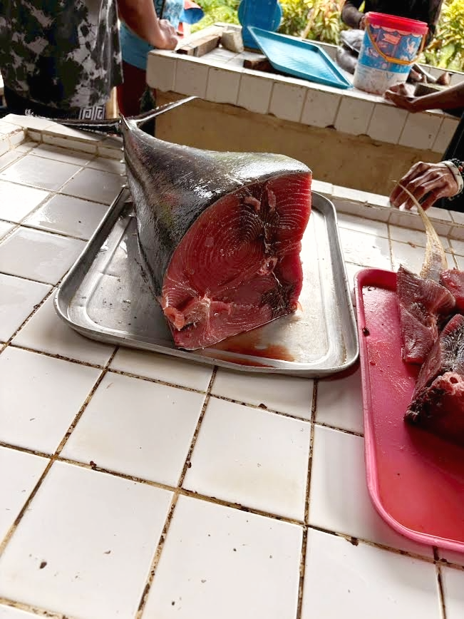 という経緯で、ずっと頭の片隅で気になっていたマグロ。やっぱり買って帰ろう思い、空港へ向かう途中に市場に寄ることにした。ちなみに、こんなこともあろうかとクーラーボックスは持参している(笑)。