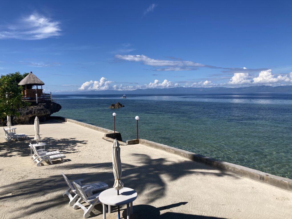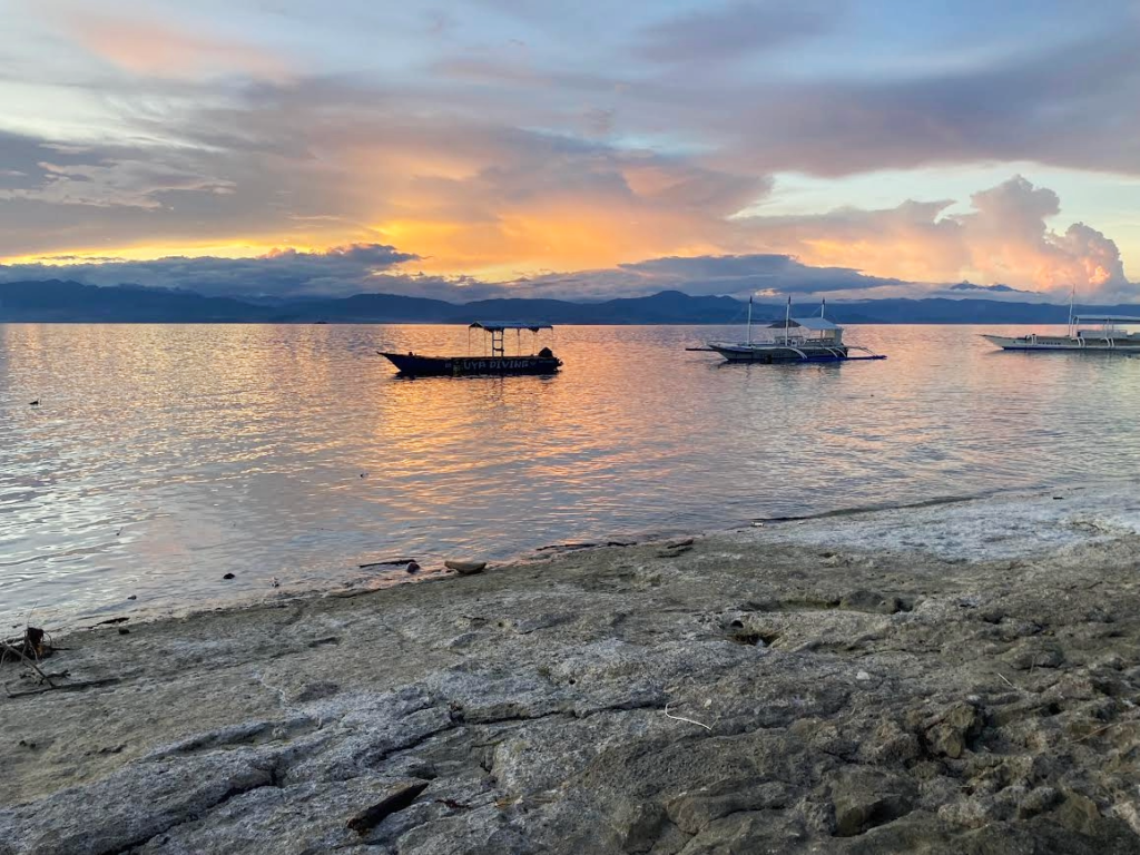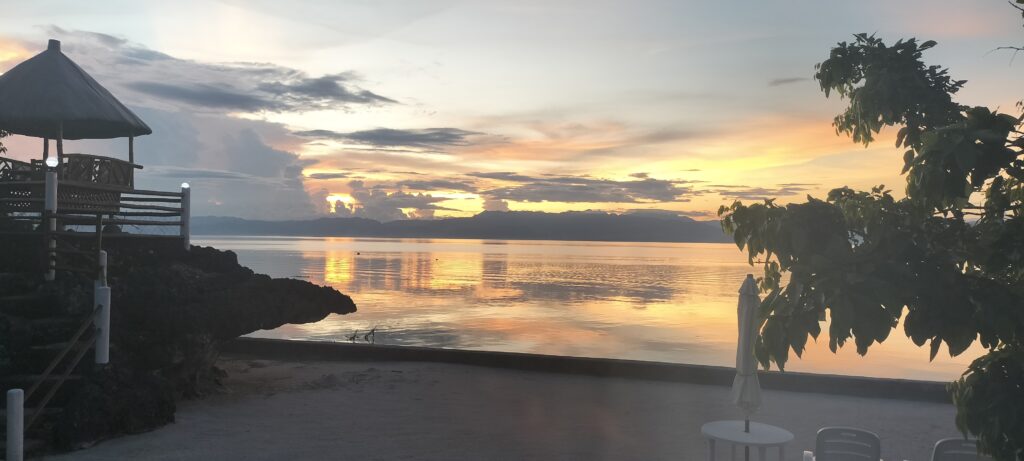 さて、カワサンフォールを満喫し(【イワシとカメに会いに行く、『モアルボアル(Moalboal)』&『カワサンフォール(Kawasan Falls)』 Part 1】参照)、モアルボアルへと戻ることに。夕飯の前に、ビーチに寄って夕焼けを眺めながら一息入れる。セブに来て以来、何度となく夕焼けや朝焼けを見てきた。建物が少ない分、空が広いからだろうか。何度見ても見飽きない。