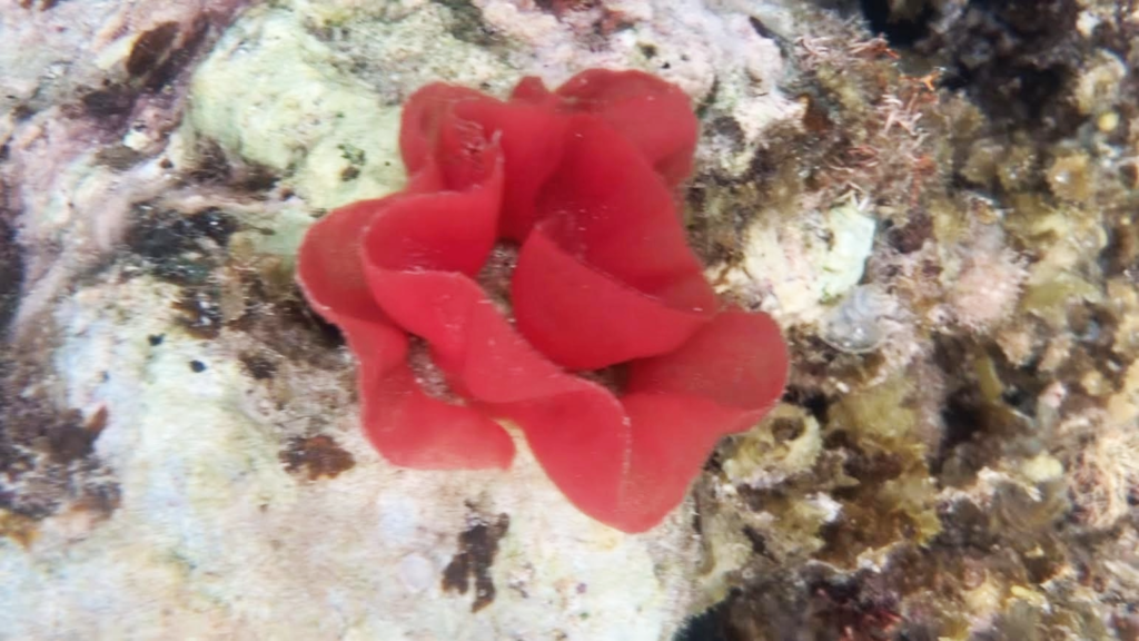 少し泳ぐとすぐにサンゴ礁が現われ始める。豊かな海だ。しばらく泳ぐと海の中にバラのようなものを発見!海中に咲くバラだ!なんだこれ!?サンゴ???