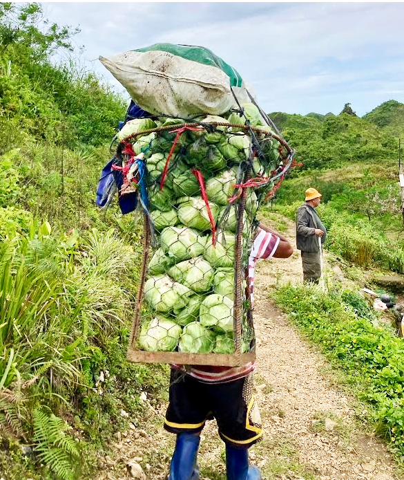 驚くことに、彼らは山を下った後、このままバイクに乗って市場にキャベツを運ぶのだ。私なら一発でむちうちになるだろうと思う…。